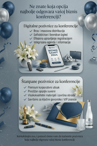Ostavite snažan prvi utisak — od modernih digitalnih pozivnica do elegantnih štampanih rešenja koja savršeno odražavaju vaš brend.
